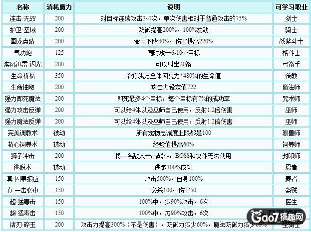 特点:群攻,随着技能等级的提高,目标会主角增多。无论是打怪过任务还是pk都是很实用的技能,Pk时挂机也能混日子,当然最好还是手动集火目标。